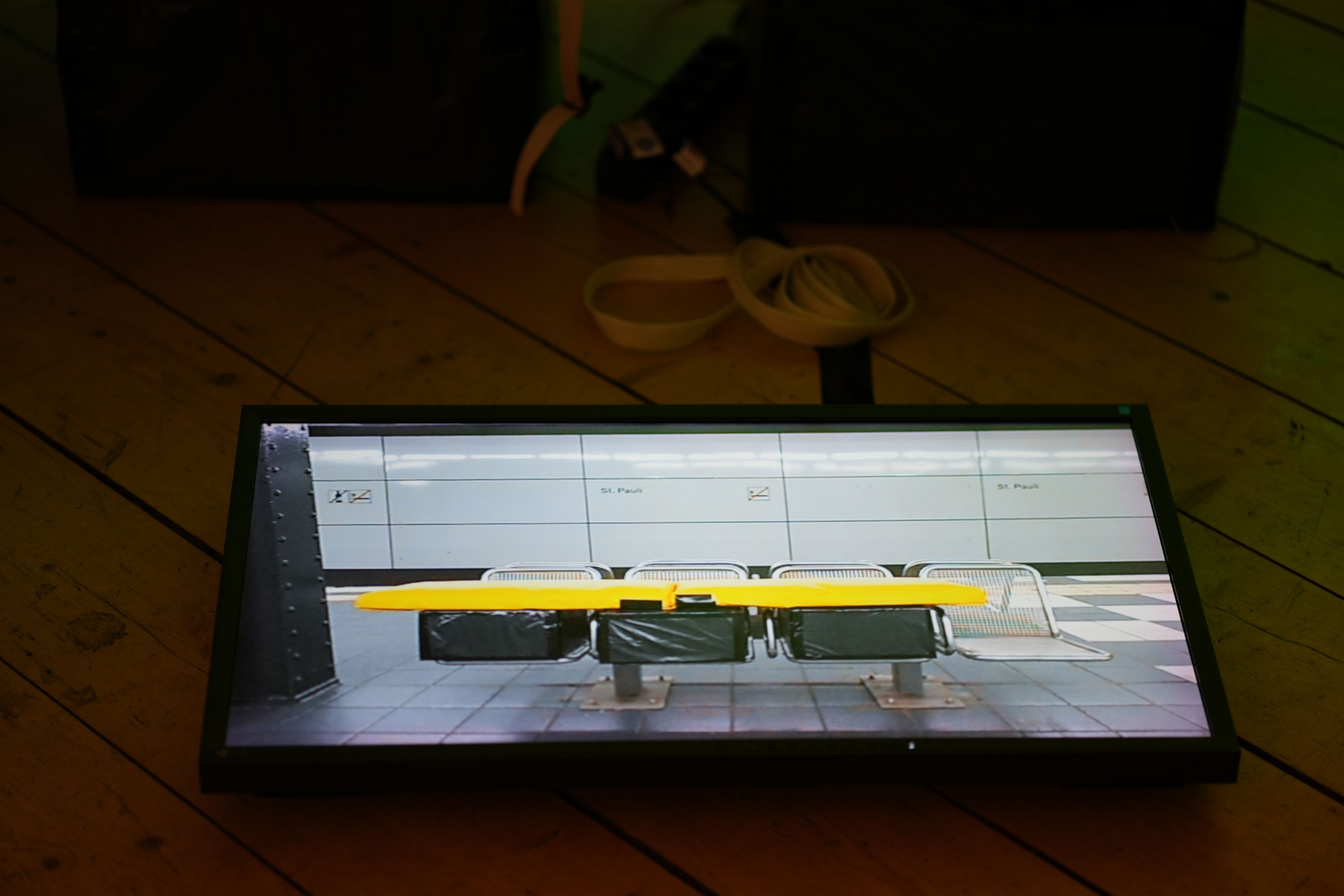 How do we deal with the Elbe if we were to see her as a person? Can the Elbe be a plaintiff? In the participatory installation "Our client the Elbe", which was set up in the former changing rooms, visitors to the exhibition slip into a court case and pass judgment on the role of the plaintiff, the Elbe, whose fundamental rights are being violated (deepening of the Elbe, water pollution, impact of the climate crisis).